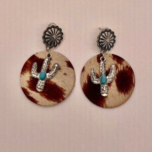⭐️❤️ FREE Cactus Turquoise Cow Print Faux Chic Glam Drop Plant Hippie Earrings