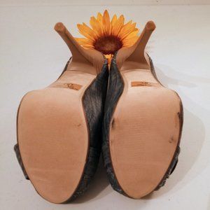 πFREE GIFT INCLUDEDπ NWOT Denim Stiletto Platform Peep Toe Heels Metal Accent