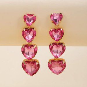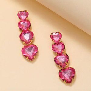 ⭐️❤️FREE Heart Drop Tiered Rhinestone Chic Glam Girly Vaca Trendy Artsy Earrings