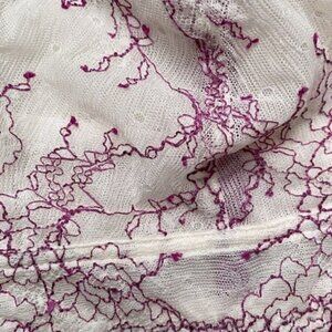 Gorgeous Heidi Klum floral French lace bra in cream color with violet (wild aster) trim, adjustable straps and satiny bow. Natural lift. No padding, no underwire.