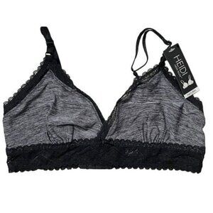 Gorgeous and sexy gray black lacy soft cup bra. No padding. No underwire. Hook and eye back closure. Adjustable straps.