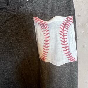 FREE KISSES Dark Gary Baseball Graphic Pocket Sleeveless Racerback Tank Medium