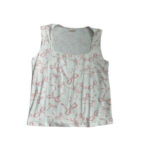 This chic white and pink bow tank top features a square neck design and is perfect for any casual occasion. The new with tags top is ideal for adding a touch of elegance to your wardrobe.
