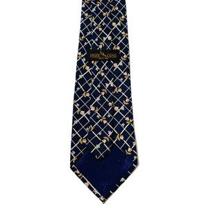 FREE LAND Dark Blue Checked & Floral Print 100% Silk Tie | 57" | Vintage, Men's