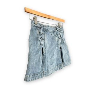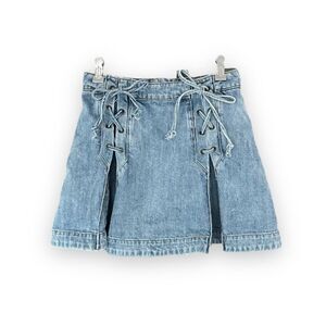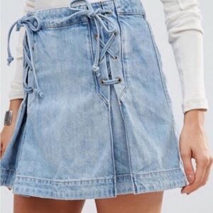 FREE PEOPLE | 100% Cotton Pleated Lace Up Denim Mini Skirt (2)