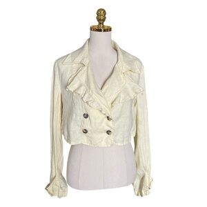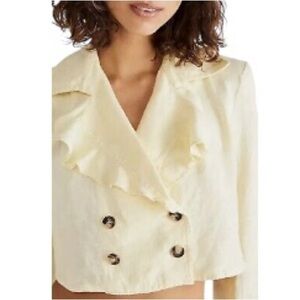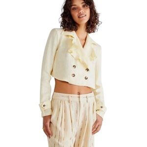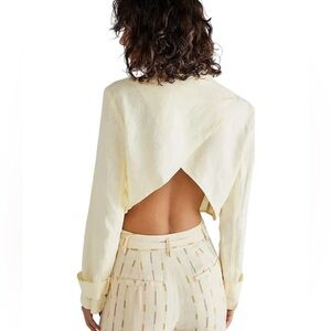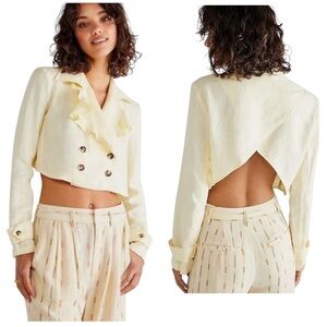 FREE PEOPLE | 100% Linen Crossover Back Yellow Bennie Cropped Blazer Size M