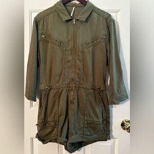FREE PEOPLE 4 Army Green Military Utility Long Sleeve Romper Convertible Sleeves