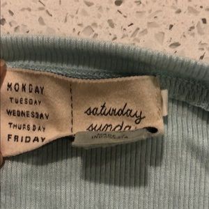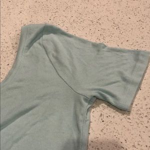 Free People | Saturday Sunday Line. Super soft baby blue basic, form fitting and snug. When worn wears a little off the shoulder. Good condition. Non smoking home.