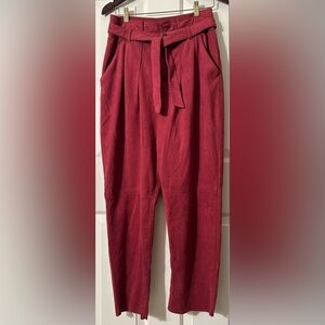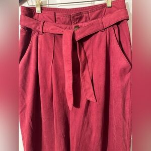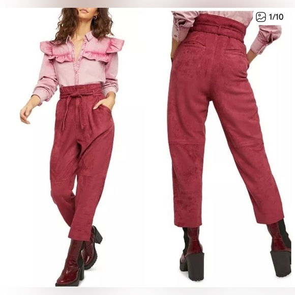 FREE PEOPLE 8 Nightfall Vegan Suede Pants Pomegranate High Waisted Paper Bag Vtg