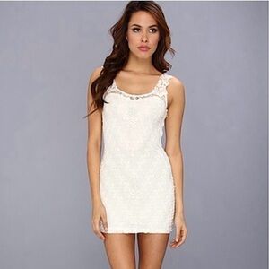 FREE PEOPLE 90s Metallic Detail Floral Lace Sleeveless Y2K Bodycon Mini Dress S
