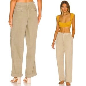 FREE PEOPLE 90s Slouchy Pleated Straight Wide Leg Relaxed Fit Khaki Chino Pant 4