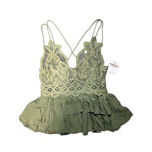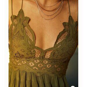 FREE PEOPLE ADELLA CAMI, OLIVE GREEN, COTTAGECORE, LACE, BOHO, EARTHY