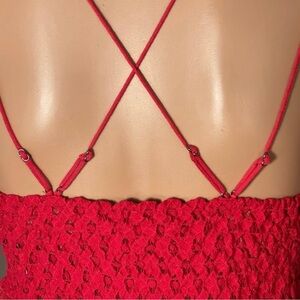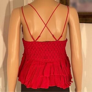 FREE PEOPLE ADELLA V-Neck Sleeveless Lace Smocked Back Cotton Blend Ruffle Cami