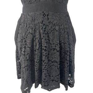 From awesome Free People is this beautiful black lace dress, fully lined underneath in black! Delineated waistline, Deep plunge front with hidden hooks, back criss-cross with diamond cutout! Seriously cute! Size M, worn just twice! Excellent! Superb EUC Condition! **ABSOLUTELY GUARANTEED CONDITION: EUC MINTY-EXCELLENT TO LIKE-NEW, by Lily @HauteClub!***