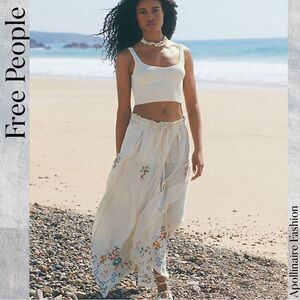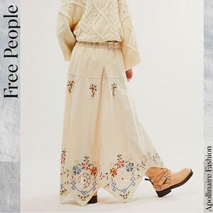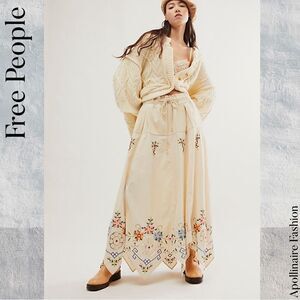 FREE PEOPLE ARIELLE EMBROIDERED MAXI SKIRT IN BIRCH MEDIUM & LARGE NWT