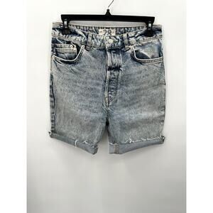 FREE PEOPLE Acid Washed Denim Cuffed Bermuda Raw Hem Cut Off Short // 28
