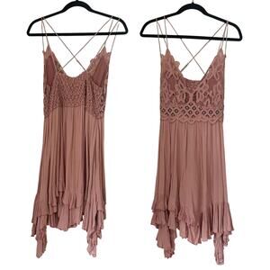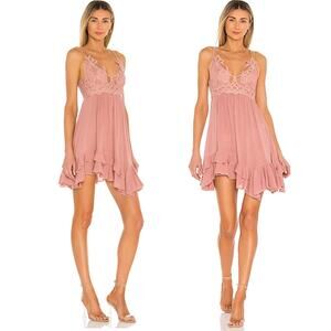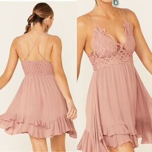 FREE PEOPLE Adella Lace Floral Baby Doll Slip Mini Dress in Pink Size L