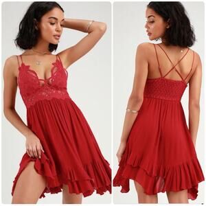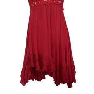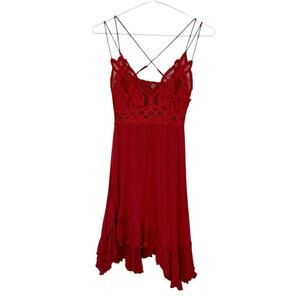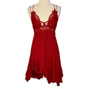 FREE PEOPLE Adella Slip Dress Red Lace Boho Chic Crochet Ruffled Asymmetrical XS