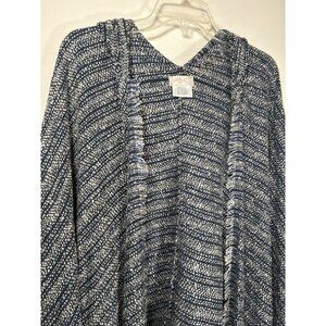 FREE PEOPLE All I Need Cozy Hooded Duster Lagenlook Boho Navy Blue Cardigan Soft
