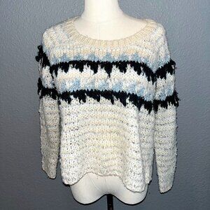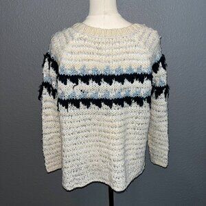 FREE PEOPLE Alpaca & Wool Blend Cream Green& Blue Nordic Pullover sweater EUC XS
