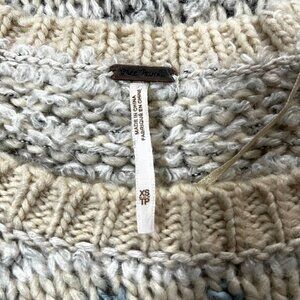 FREE PEOPLE Alpaca & Wool Blend Oatmeal Green & Blue Nordic Pullover sweater - EUC - XS - Oversized