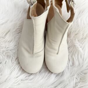 Amber Orchard Cedar Clogs / heels from FREE PEOPLE! Size 38 (converts to US 8, see size chart in photos). Worn twice. Wood sole, functional buckles on side. Official color is a Bone/Off White Leather with the tiniest hint of green.