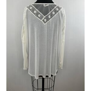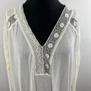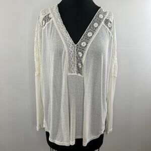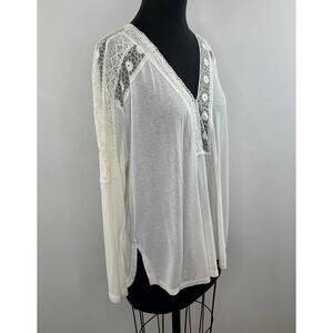 FREE PEOPLE Angel Food White Cotton V-Neck Lola Long Sleeve Pullover Top Size L