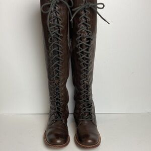 FREE PEOPLE Anthropologie GEE WAWA Brown Pebbled Genuine Leather LACE UP COMBAT GRANNY WITCHY Romantic Bohemian BOOT Women’s 7