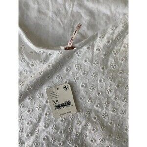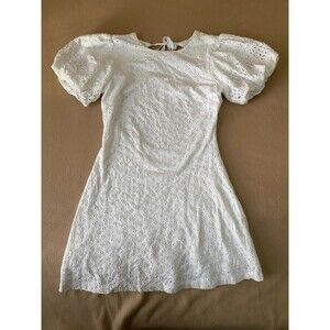 FREE PEOPLE Apricot Rose Eyelet Mini Dress with Puff Sleeve, White, XS $138 NWT