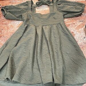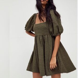 FREE PEOPLE | Army Green Puff Sleeve A-Line Violet Mini Dress