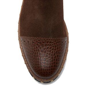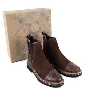 Featuring a more-is-more aesthetic that's very of the moment, this patent-and-suede Chelsea boot goes all out with studded, brogued and scalloped trims.
