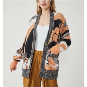 FREE PEOPLE August Cardigan Oversized Peach Petals Floral Sz M {3P42}