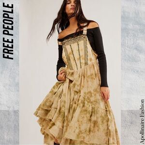 Features: Classic bib-and-brace bodice, adjustable straps, embroidered detailing at the bodice, classic tie-dye design