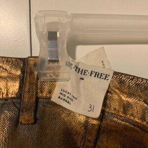 Free People Good Luck Gold Metallic Horseshoe Barrel Jeans