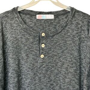 Free People FP Beach Sleep to Dream Knit Grey Black Henley Drop Shoulder Small