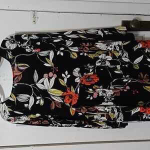 Stylish black top with vibrant floral patterns. Bella Free People...Excellent condition floral vibrant colors feminine and flirty make a statement size small. Fast ship!! Be yourself in this piece!! 🖤🧡💛🤍🤎