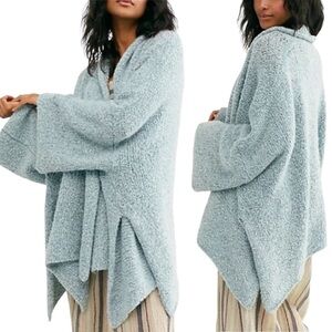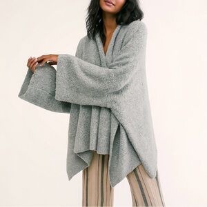 FREE PEOPLE BFF Boucle Cardigan Sweater. Very oversized - could easily fit a small or medium. See measurements. So soft stretch knit cardigan featured in an open front design with dropped dolman sleeves for an added slouchy shape. Ultra soft, fuzzy wooly knit. Shawl collar. Oversized slouchy fit. Open front. Long dolman wide sleeves. Exaggerated side splits.