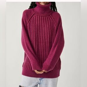 FREE PEOPLE BIG CITY TURTLE SWEATER MULBERRY GARNET XS NEW