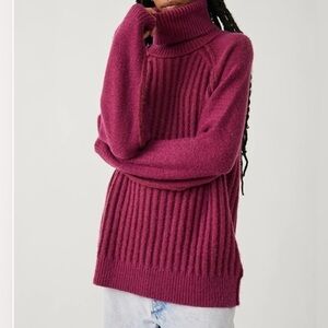 FREE PEOPLE BIG CITY TURTLENECK SWEATER MULBERRY GARNET REAL SOFT XS NEW NO TAGS