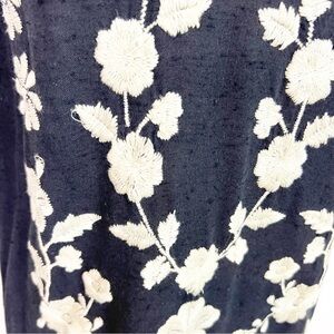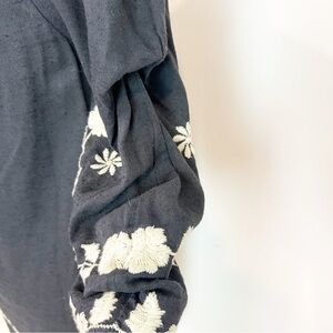 Free people black with off-white floral embroidery short sleeve shift dress.