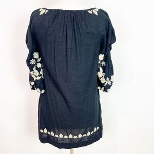 FREE PEOPLE BLACK WITH OFF-WHITE EMBROIDERY SHORT SLEEVE SHIFT DRESS WOMENS XS