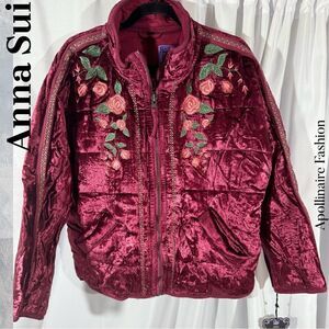 ANNA SUI FOR FREE PEOPLE DOLMAN QUILTED JACKET IN WINE EMBROIDERED ROSE MOTIF S/P NWT