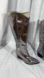 Features: Pull-on style, tall design, leather fabrication, pointed toe, chunky block heel, metallic finish, inner leg zipper