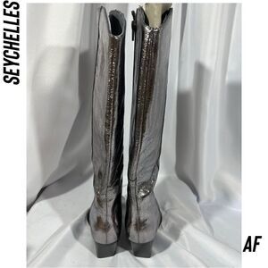 FREE PEOPLE BY SEYCHELLES SHINE ON TALL BOOTS IN METALLIC PEWTER NWT SIZE 6.5