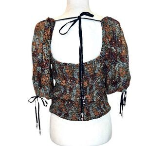 FREE PEOPLE Back On Crop Top Floral Print Smocked Size Large