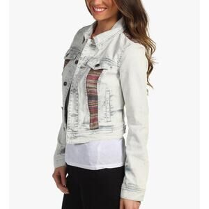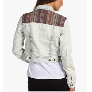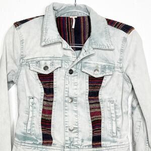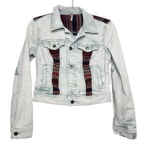 FREE PEOPLE Baja Jean Jacket Distressed Cropped Trash White Wash Denim Size S