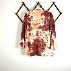 FREE PEOPLE Be Free Tie Dye Long Sleeve Tee Cabernet Combo Size Medium EUC A06