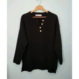 FREE PEOPLE Beach Hailee Sweater Womens S Black Henley Waffle Knit Oversized