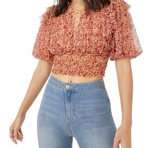 FREE PEOPLE Beatrice CROP Top in Peach floral print Size XS NEW