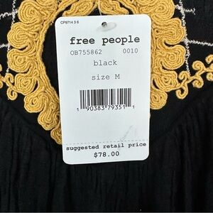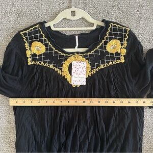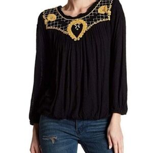 FREE PEOPLE Begonia Embroidered Black Long Sleeve Top Size Medium